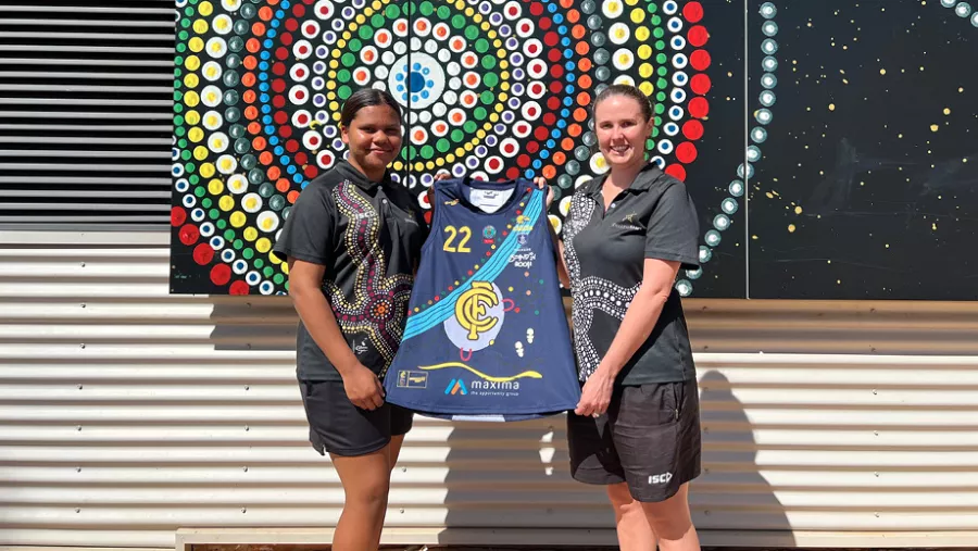 On Friday night, the Claremont Womens Football Club (CWFC) presented their Indigenous round guernsey to their players before training, with a special video from the design competition winner and Halls Creek Shooting Stars participant, Skye.